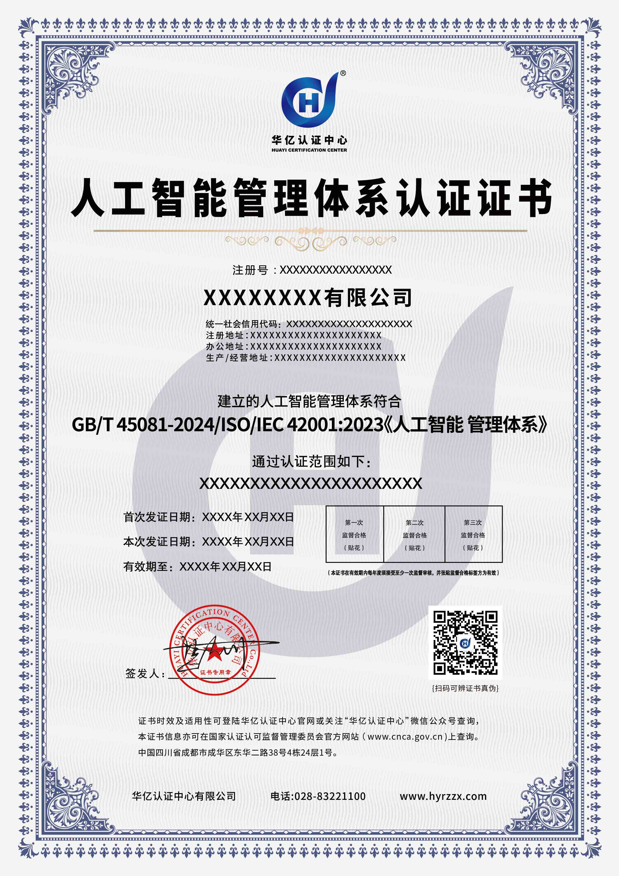 人工智能管理体系认证证书