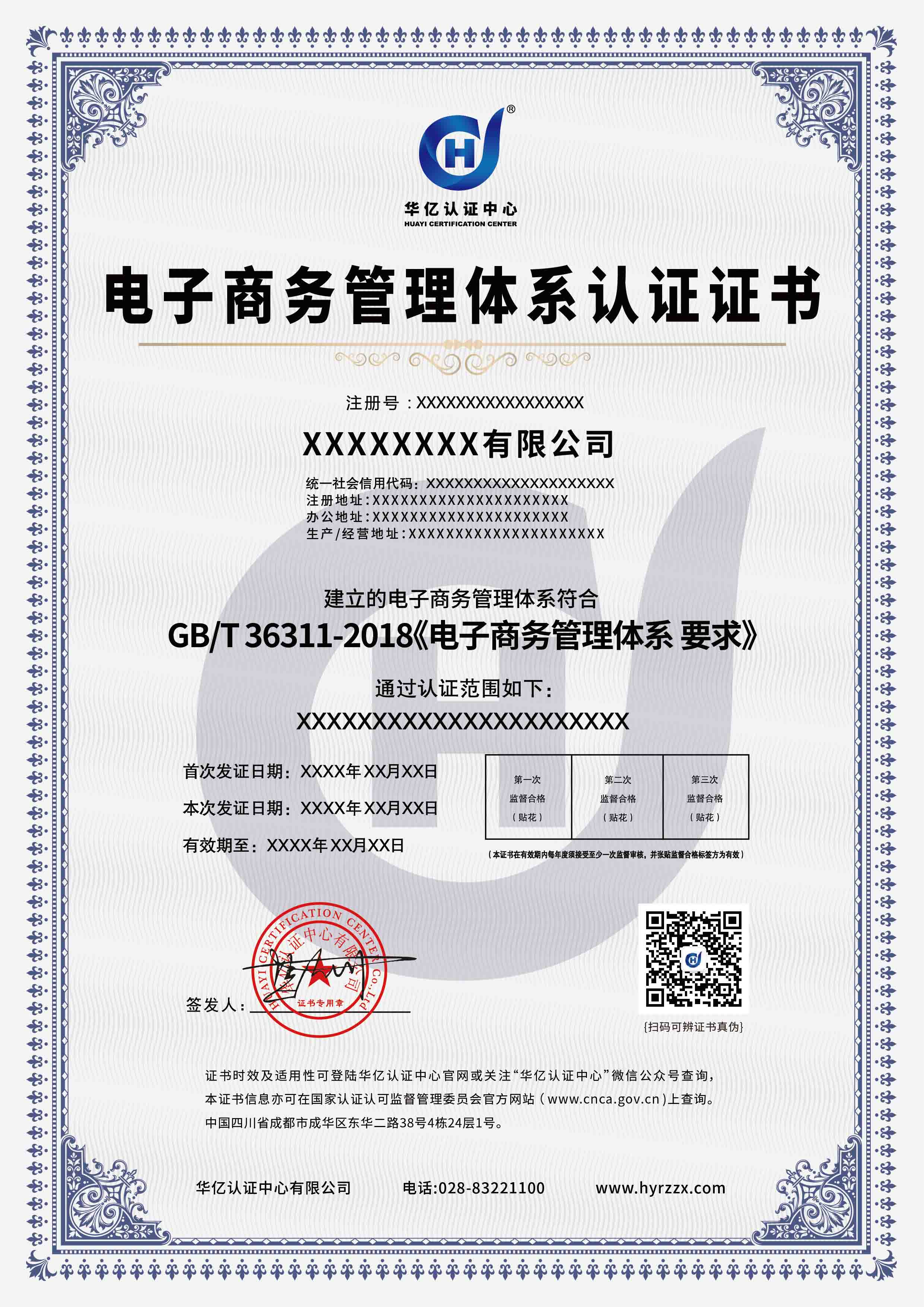 电子商务管理体系认证证书